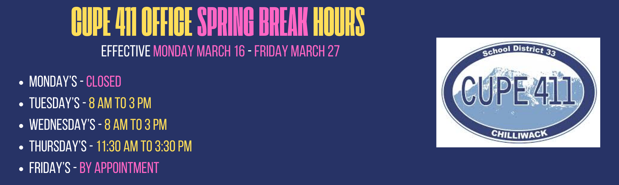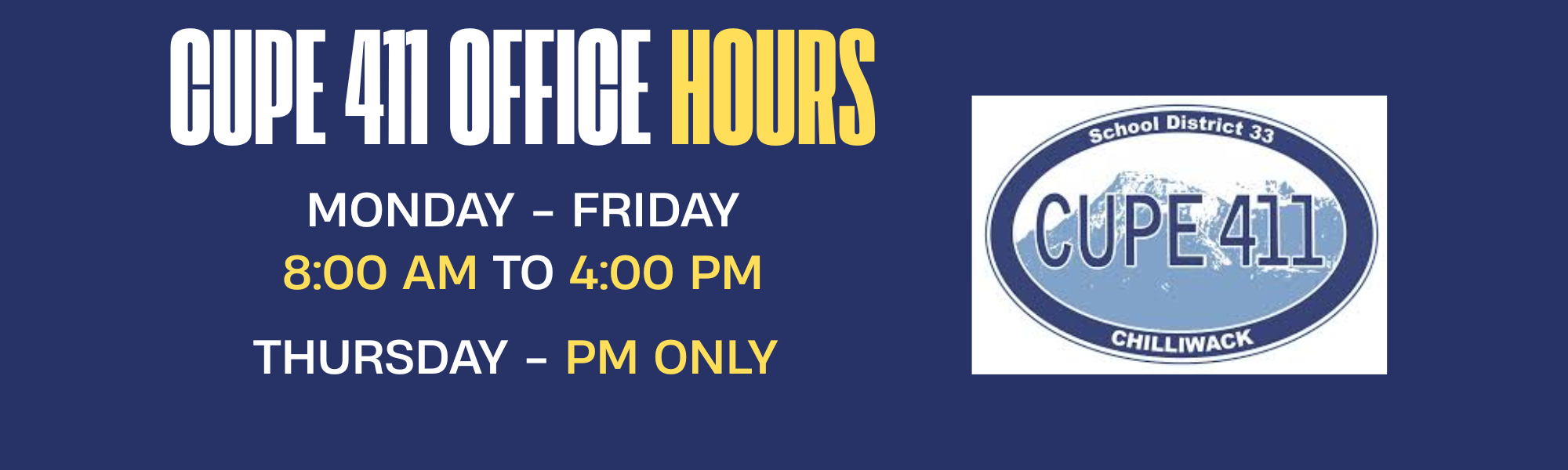 Email us! unionoffice@cupe411.ca | Call us! 604.392.1411 | Stop by the office!